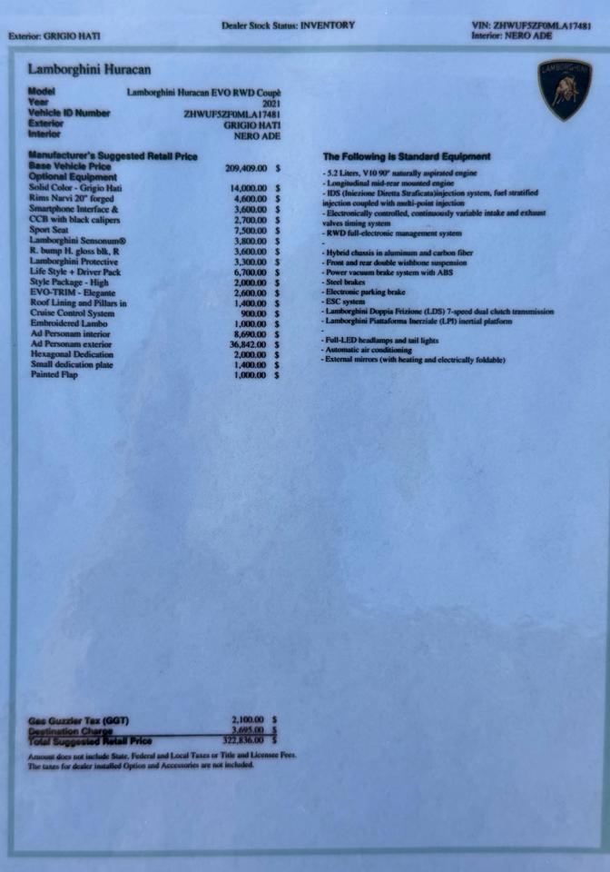 2021 Lamborghini Huracan EVO RWD